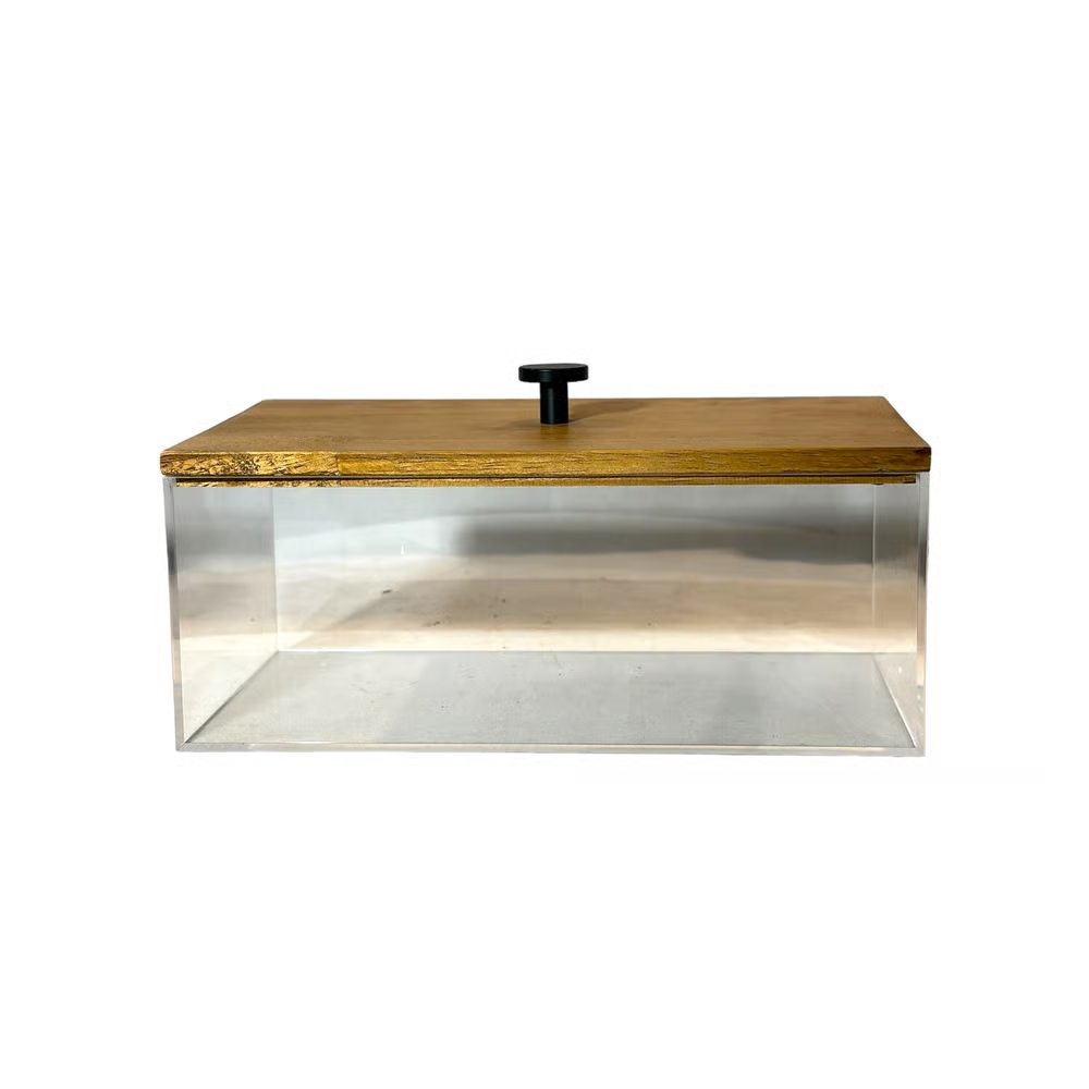 CAIXA ORGANIZADORA EM ACRÍLICO E MADEIRA GRANDE L24CM X A10CM X P14CM