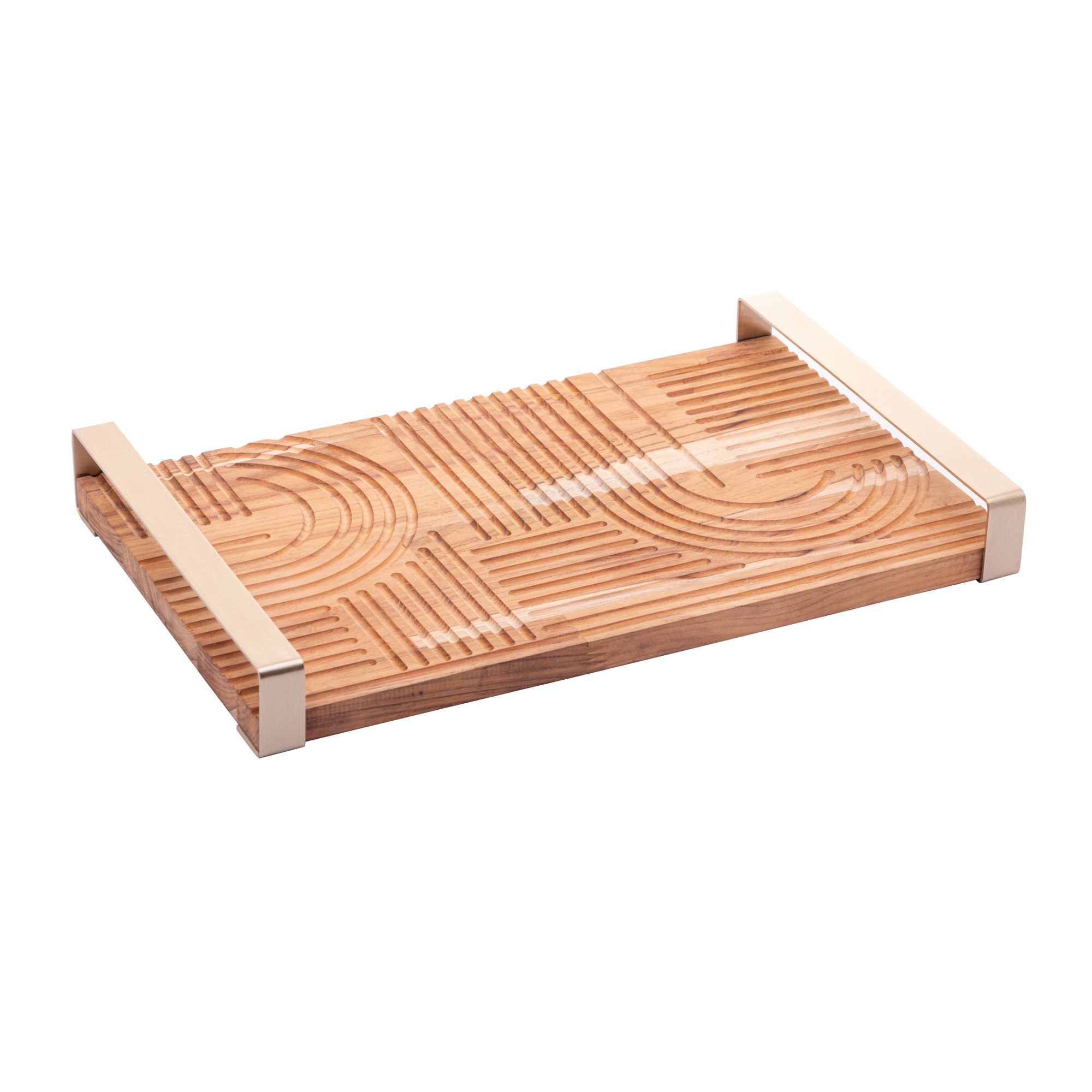 BANDEJA DE MADEIRA COM ALÇA EM AÇO INOX TECA CHAMPANHE 37CM X 23CM X 5CM - WOLFF CRAFT
