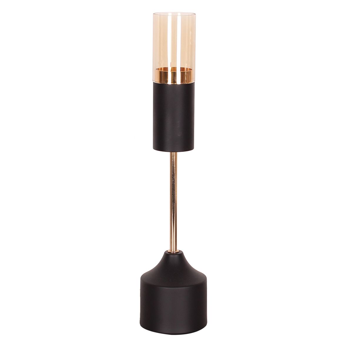 CASTICAL DE METAL E VIDRO PRETO E COBRE 1 VELA