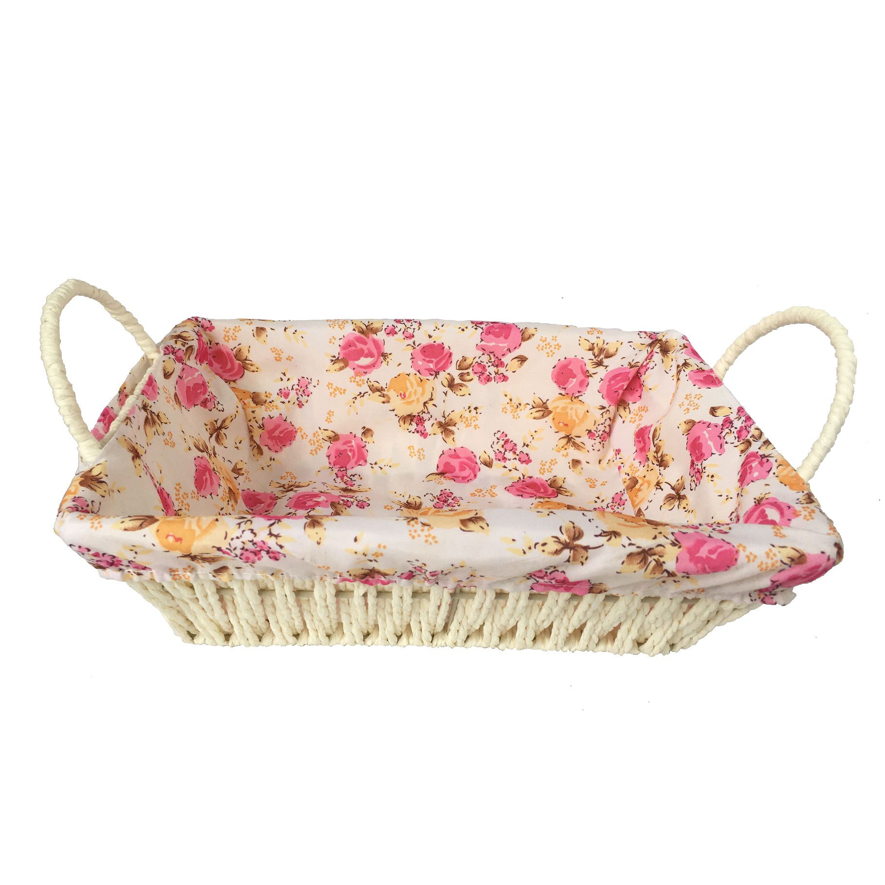 CESTA EM FERRO REVESTIDO TECIDO ALGODÃO 26X19X8CM BEGE
