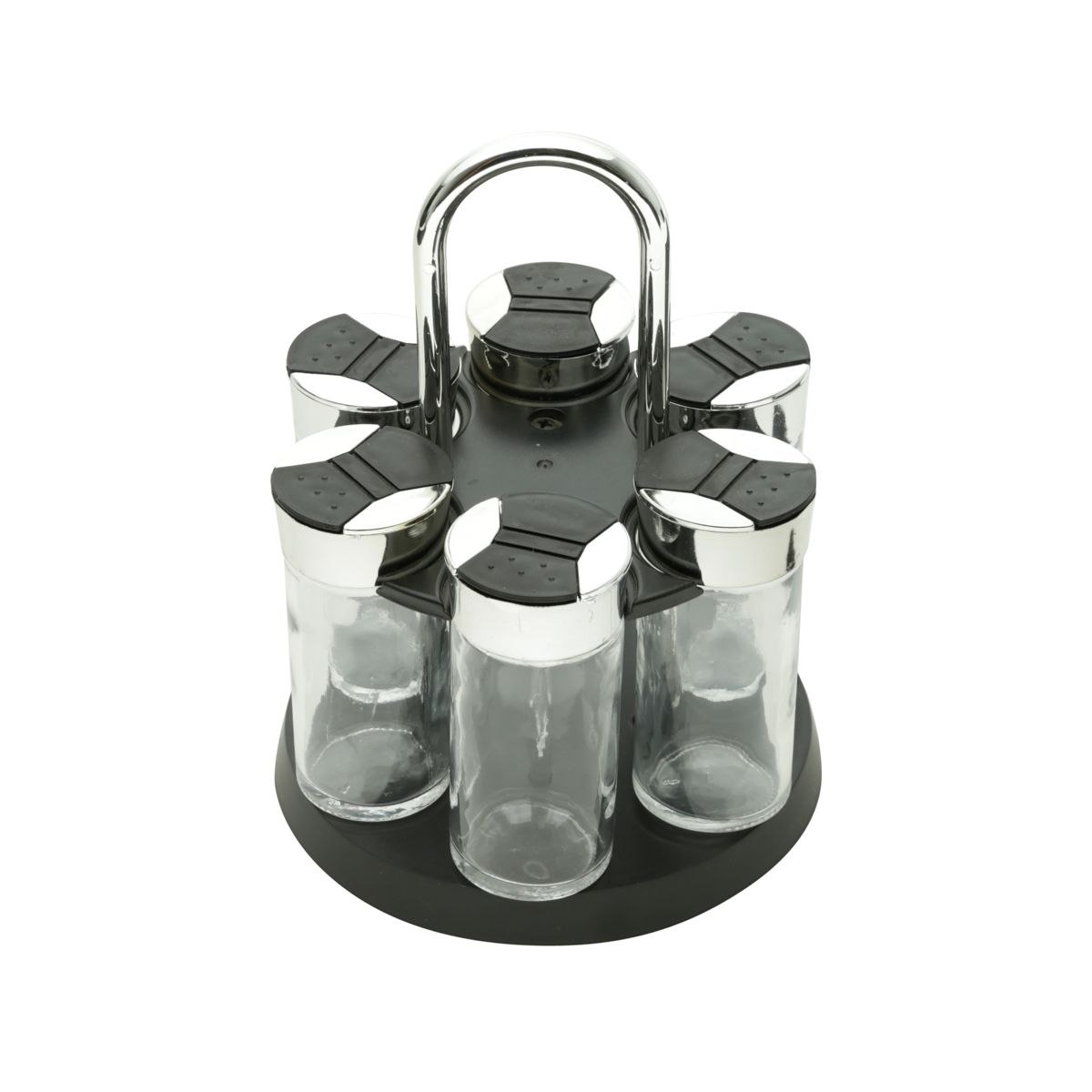 CJ 7 PC P/TEMPERO DE VIDRO C/TAMPA DE PLÁSTICO E BASE GIRATÓRIA PRETO LUIGI 15,5X20,5cm