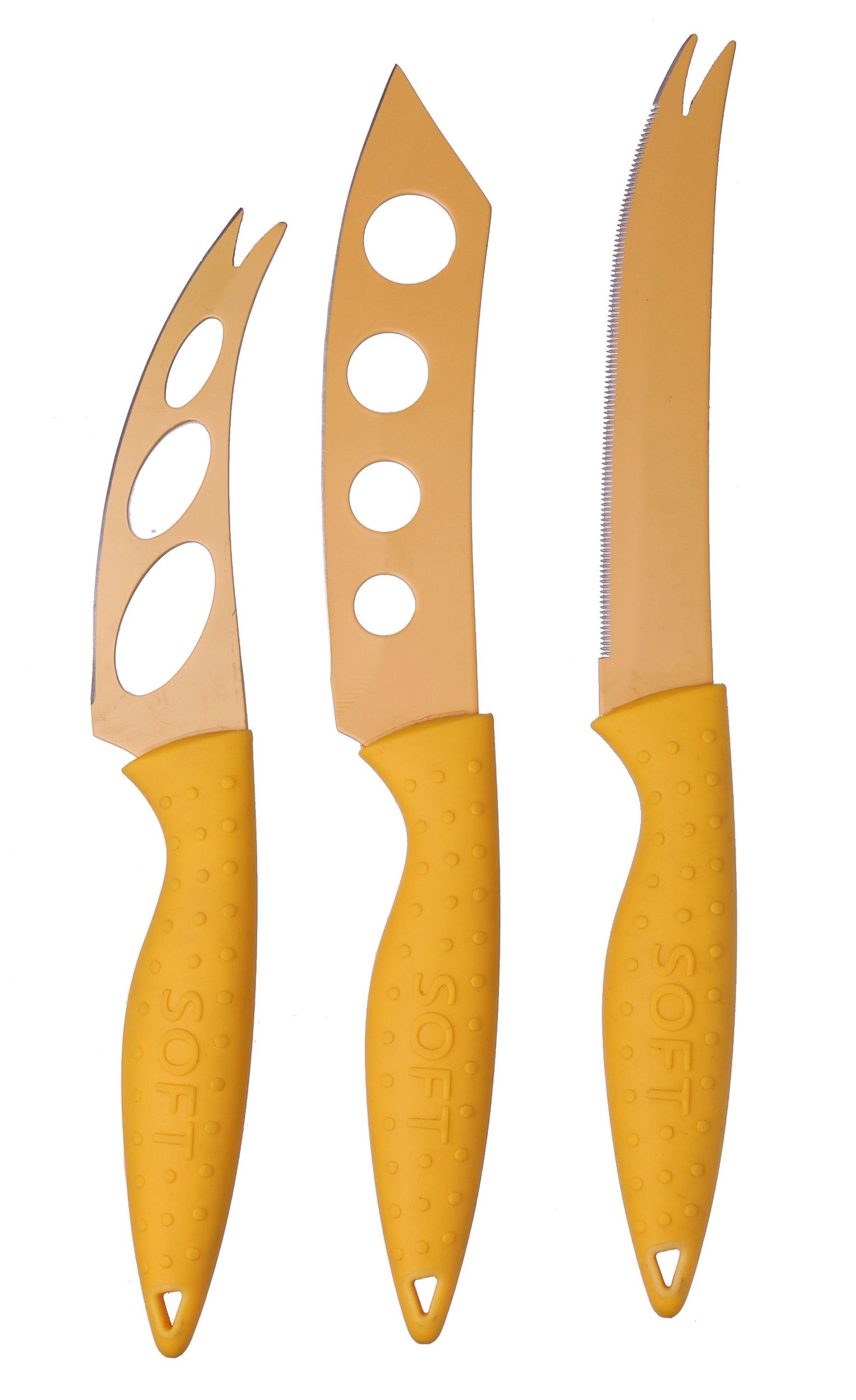 JG DE 3 FACAS PARA QUEIJO EM INOX AMARELO