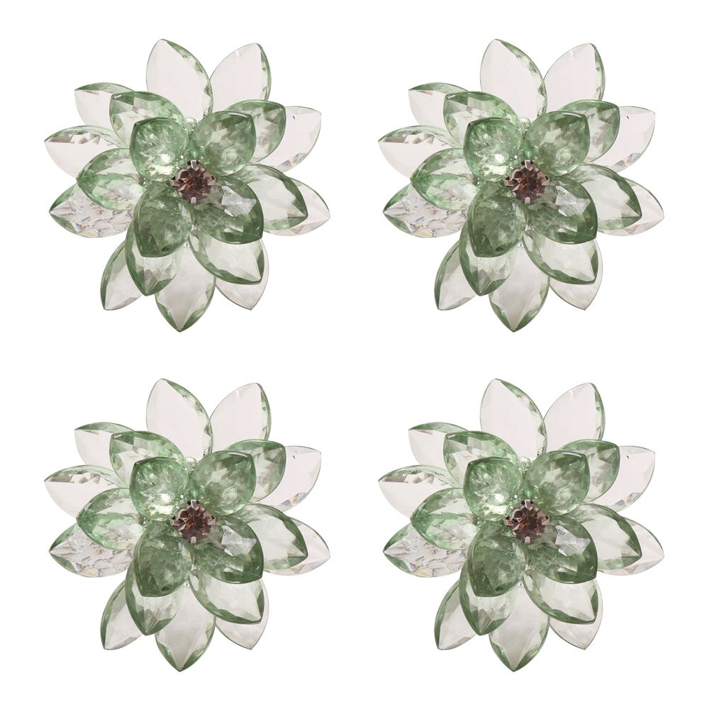 JOGO DE 4 ANEIS LÓTUS PARA GUARDANAPO EM PLASTICO D6,3XA6,3CM COR VERDE