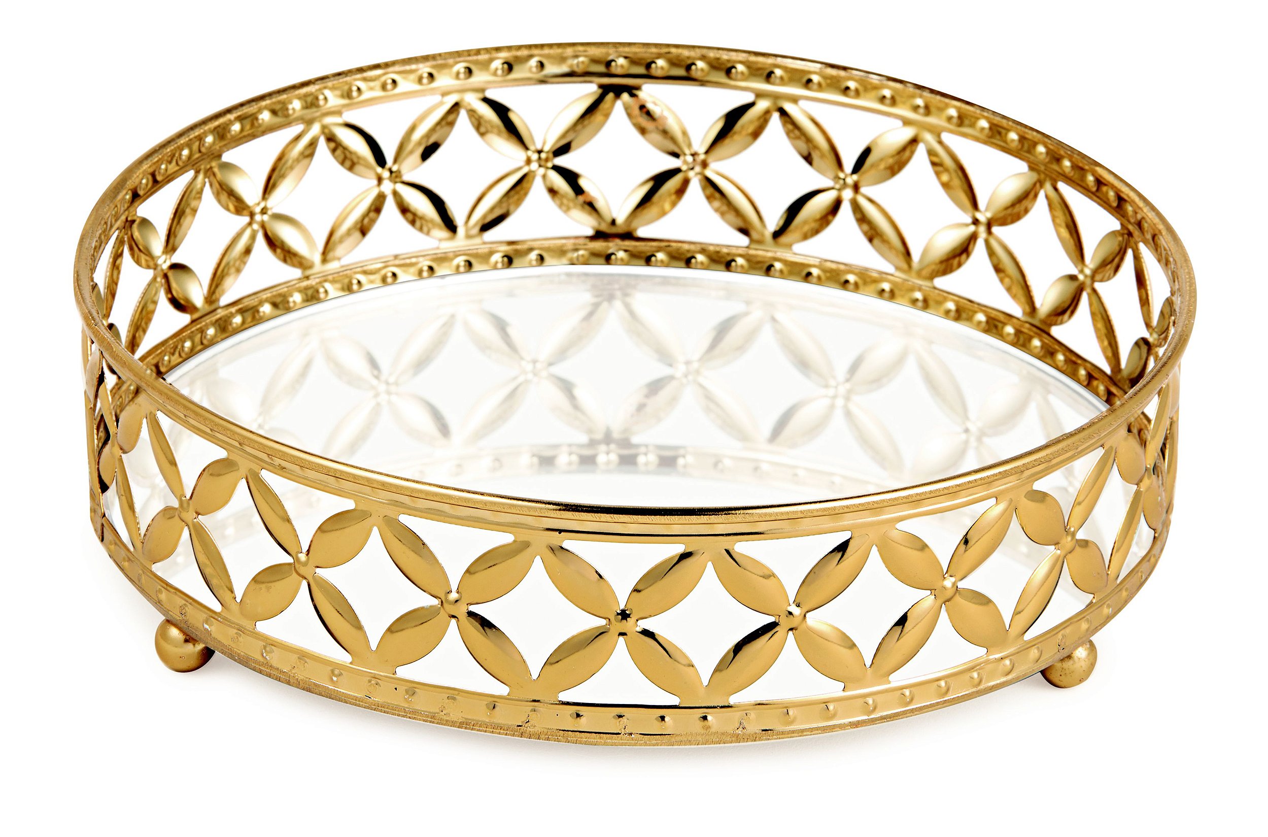KIT BANDEJA DOURADA EM METAL - 3 PÇS