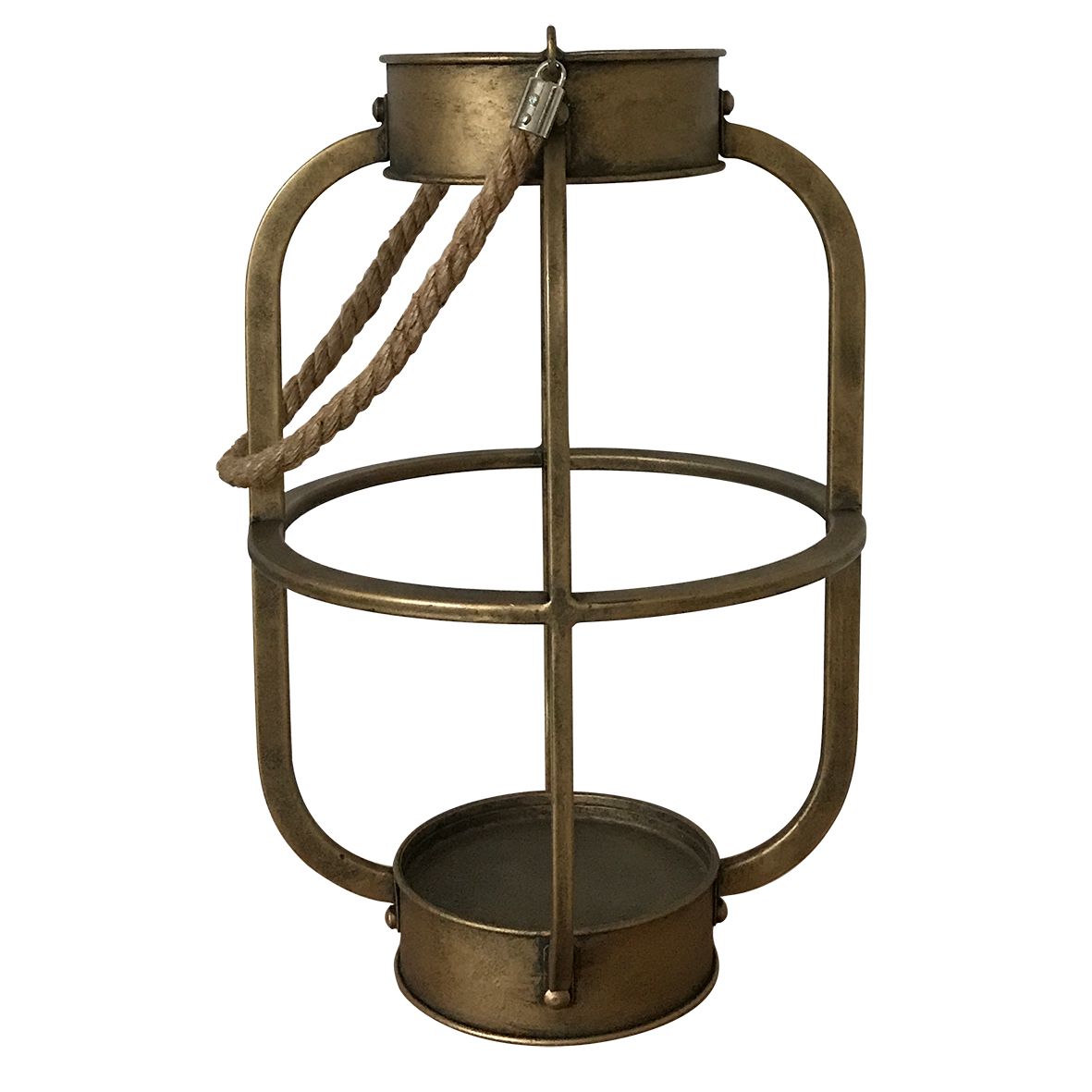 LANTERNA DE METAL COM ALCA DE CORDA 24CM X 13CM X 36,5CM