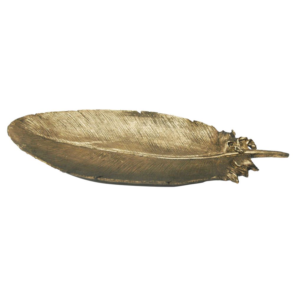 PENA DECORATIVA EM RESINA DOURADA 46,5CM X 18CM X 6CM