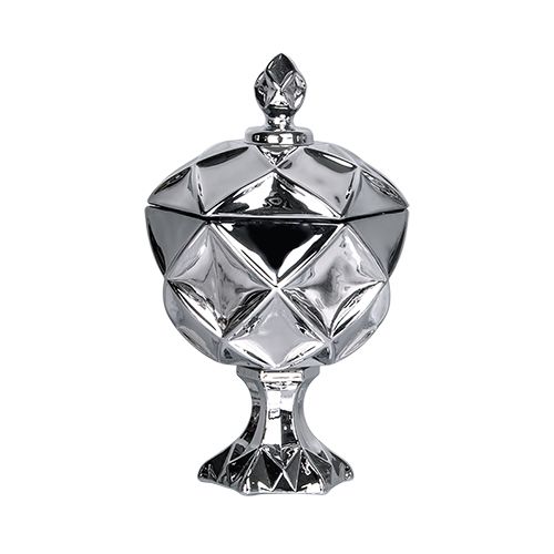 POTICHE BRUXELAS COM PE CRISTAL D11XA18CM COR PRETO METALICO
