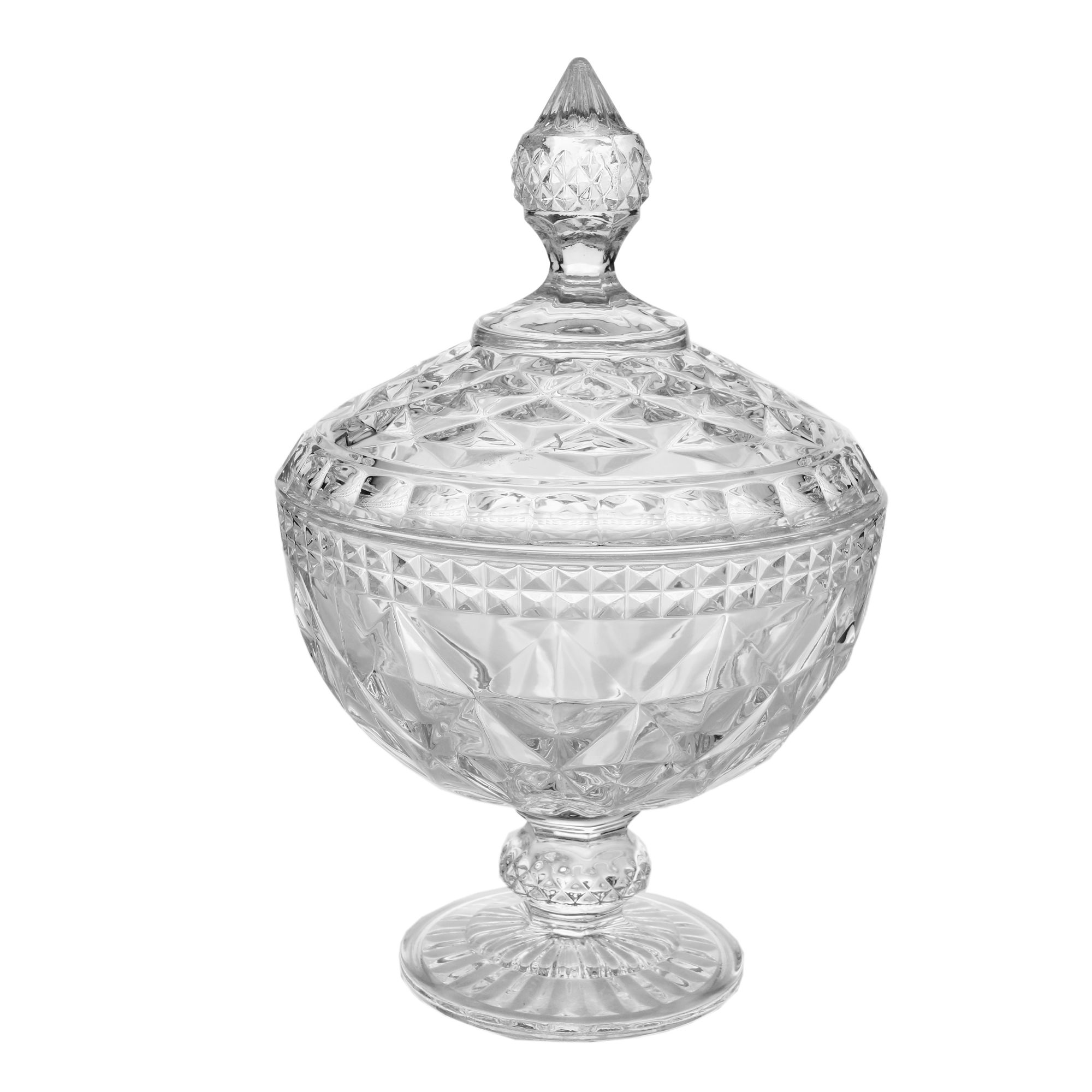 Empresa especializada em produtos de utilidades domésticas, decoração de ambientes e oferece produtos exclusivos, de alto padrão, como este POTICHE CORATIVO C/PÉ CRISTAL DIAMOND TRANSPARENTE 15x23 para presentear ou deixar a sua casa única, elegante e impecável.